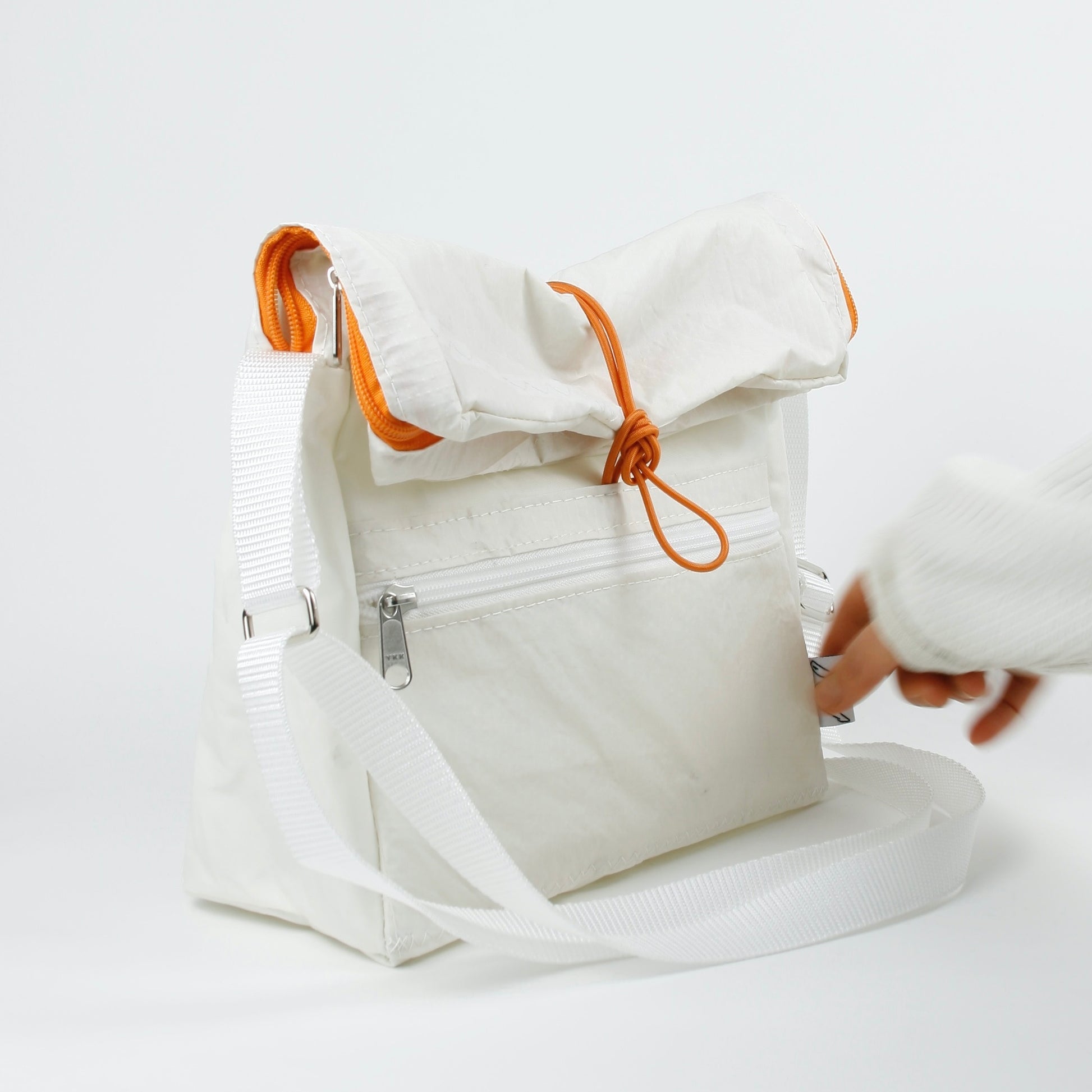 Color : white/white (inner layer/outer layer); orange (accents); metallic (hardware)