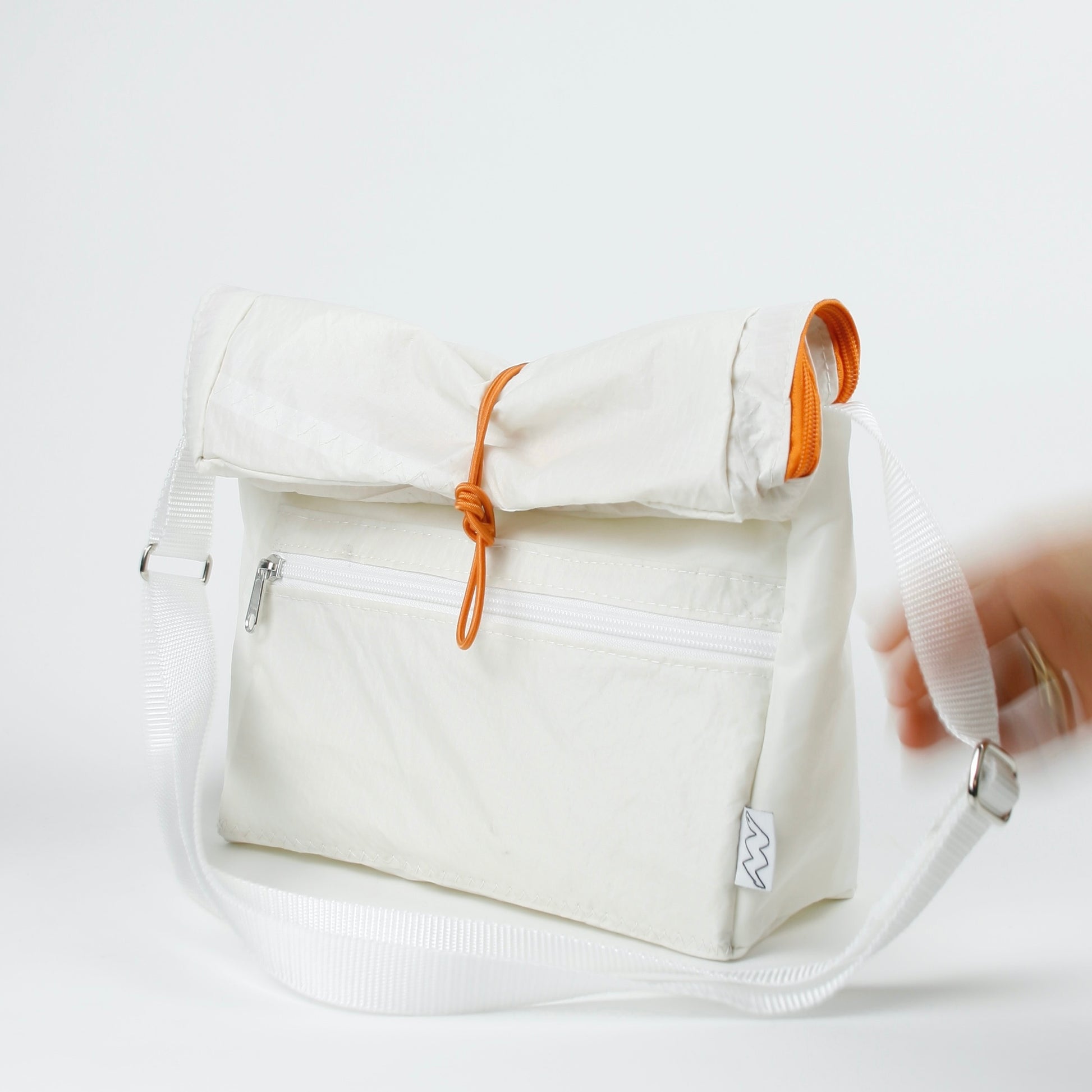 Material : 100 % recycled sailcloth material; polyester- / nylon fibers (fabric); polyester (straps); metall (hardware)