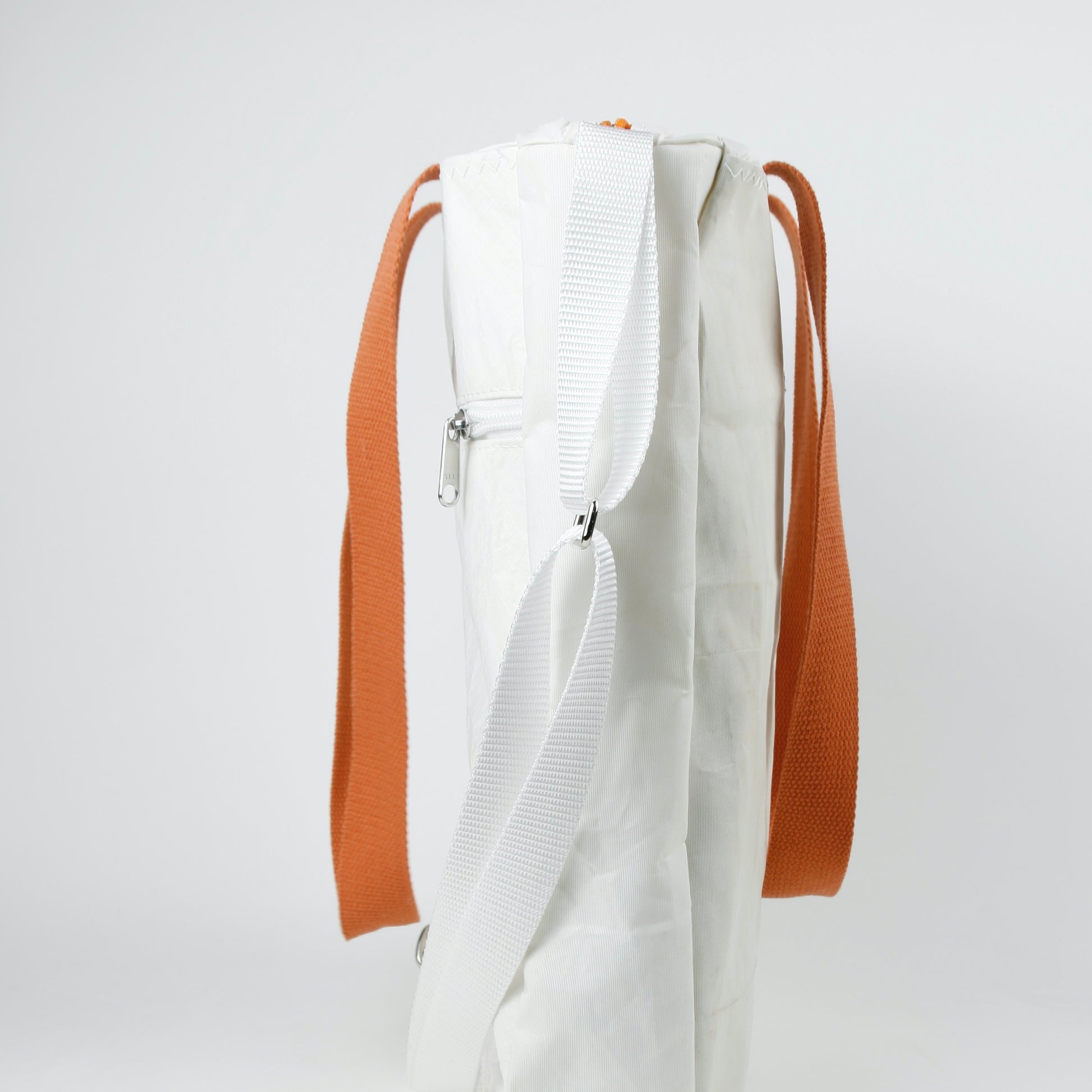 Material : 100 % recycled sailcloth material; polyester- / nylon fibers (fabric), polyester/cotton (straps), metall (hardware)