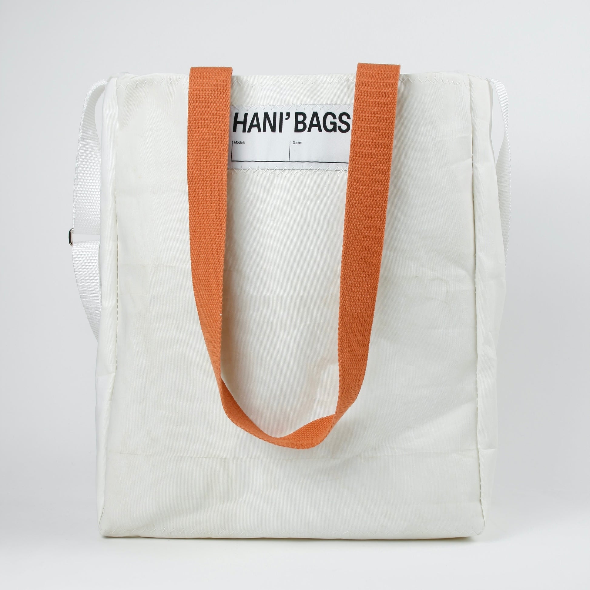 Color : white / white (inner layer / outer layer); orange (accents); metallic (hardware)