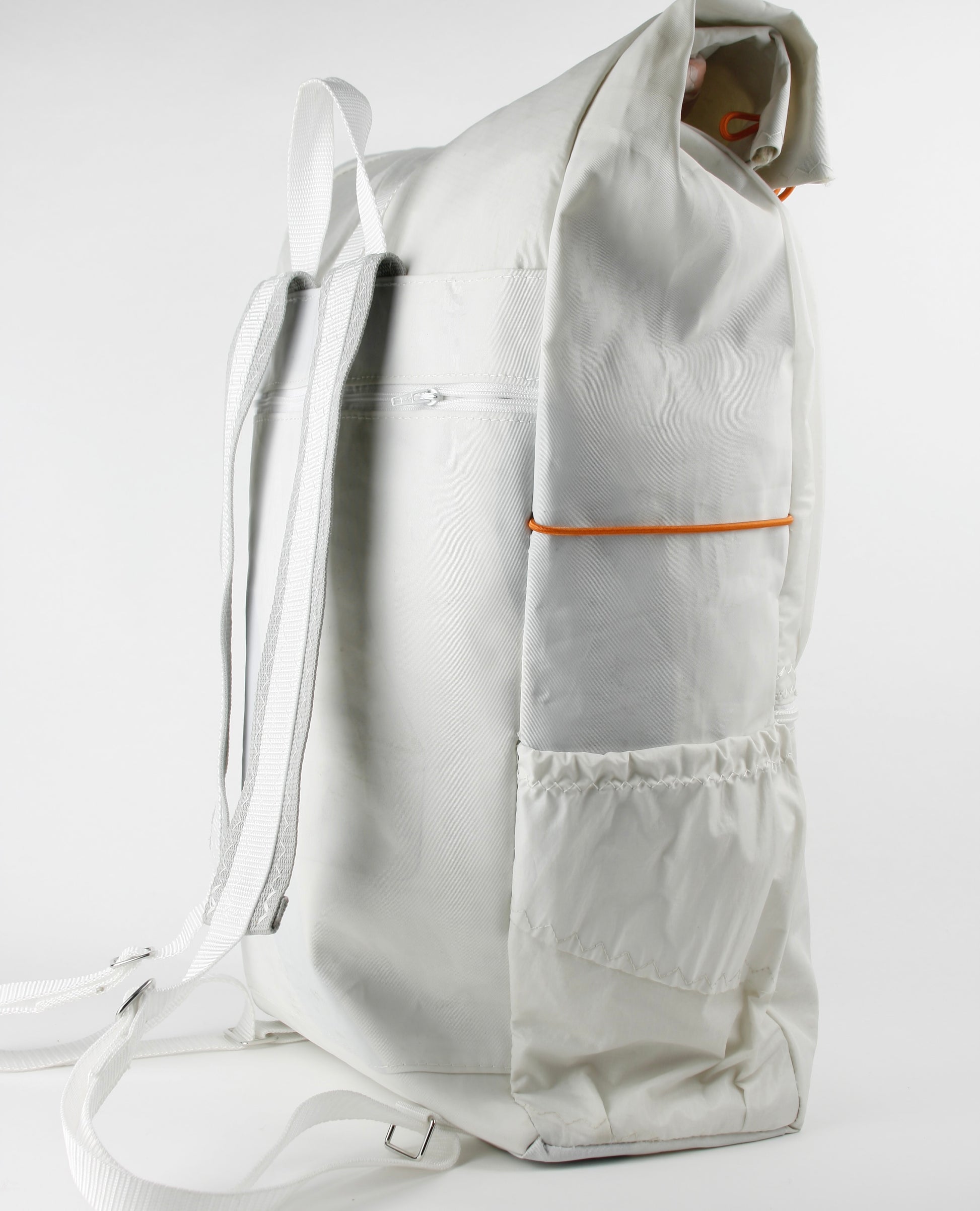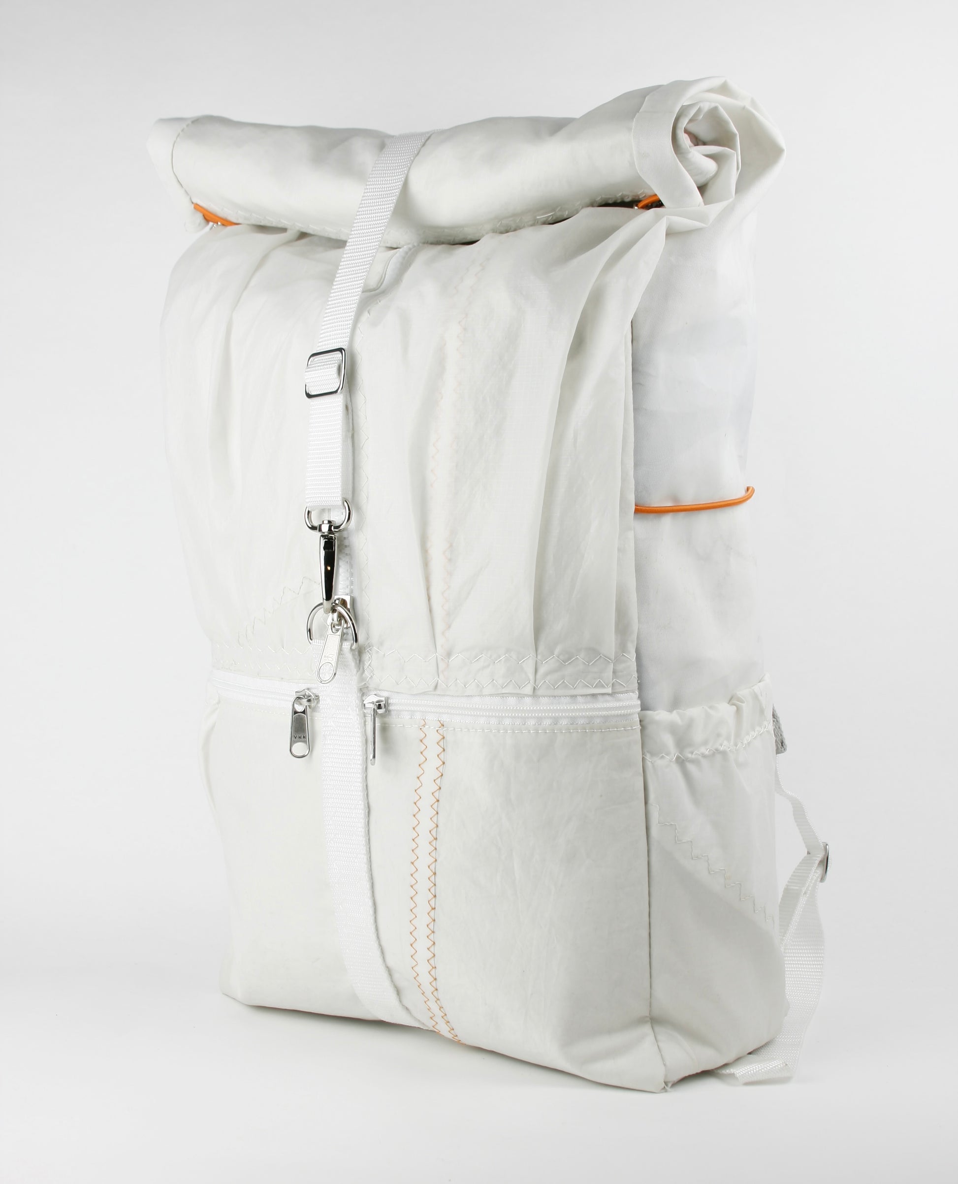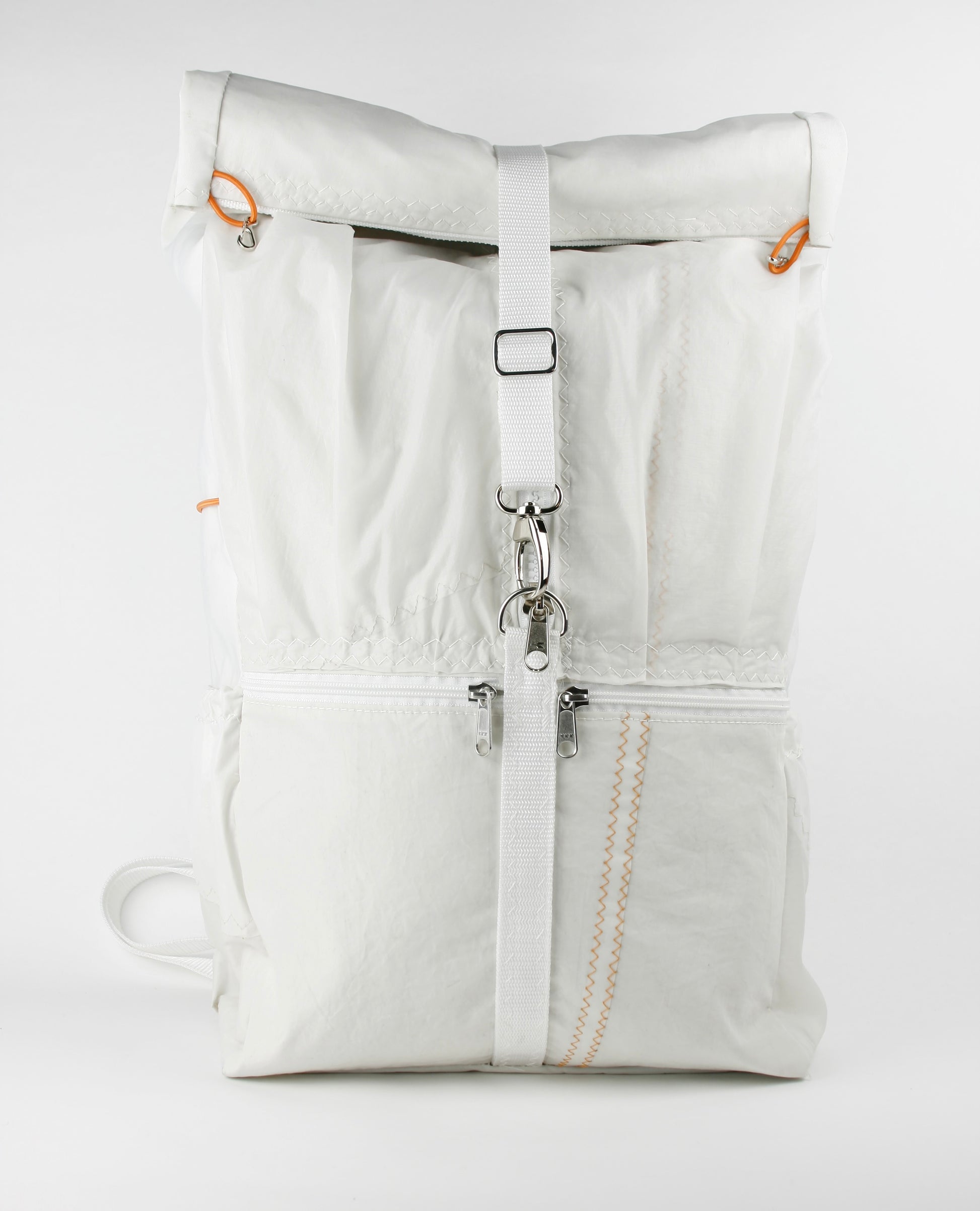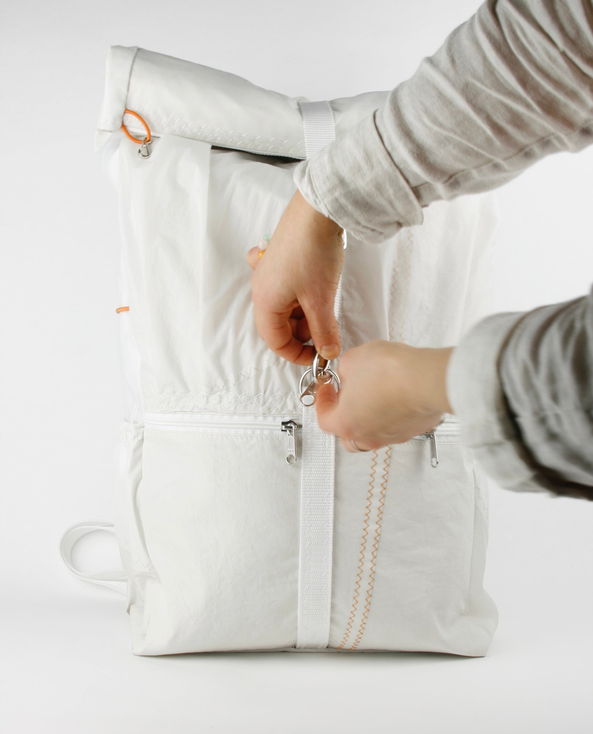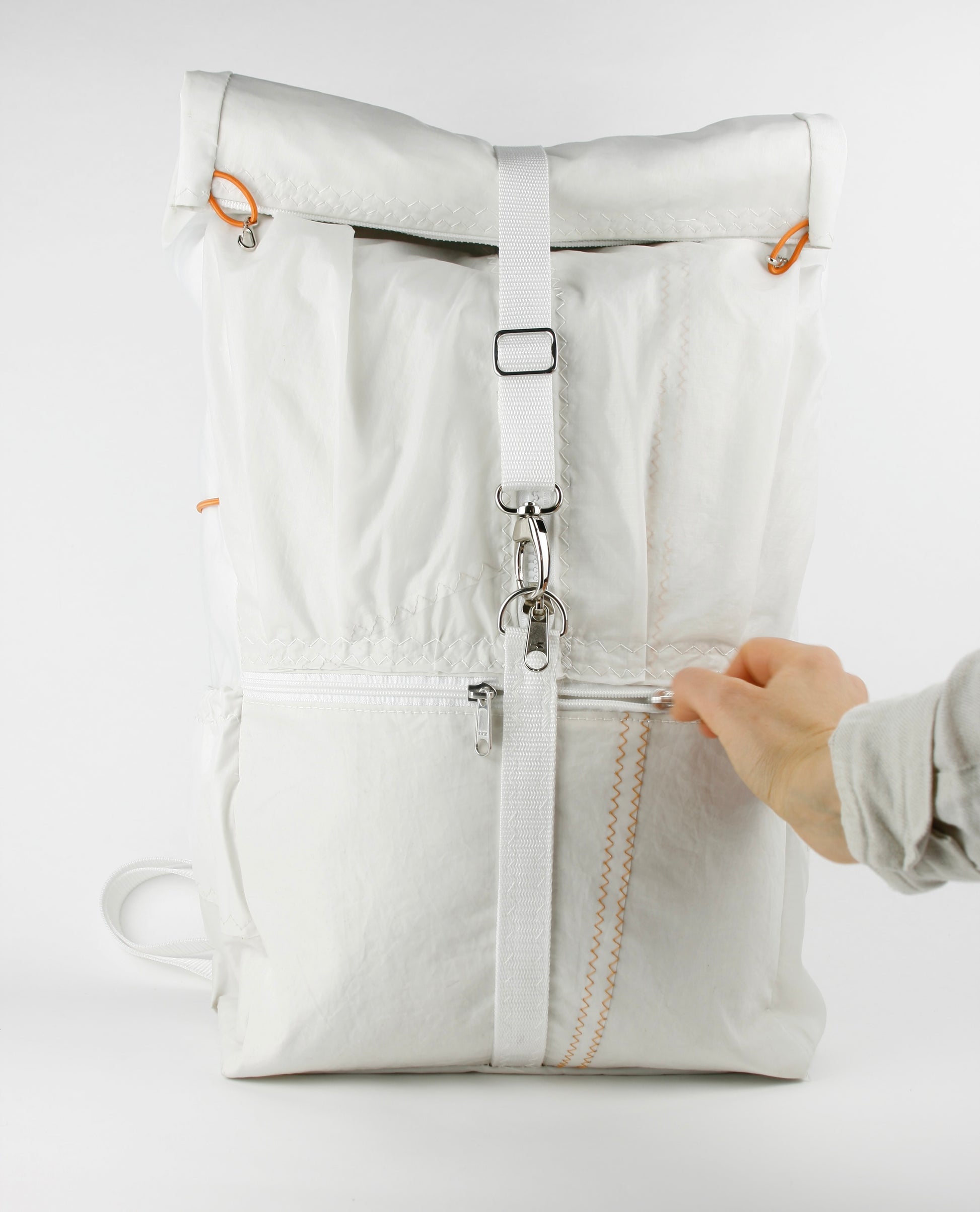 Material : 100 % recycled sailcloth material; polyester- / nylon fibers (fabric); polyester (straps); metall (hardware)