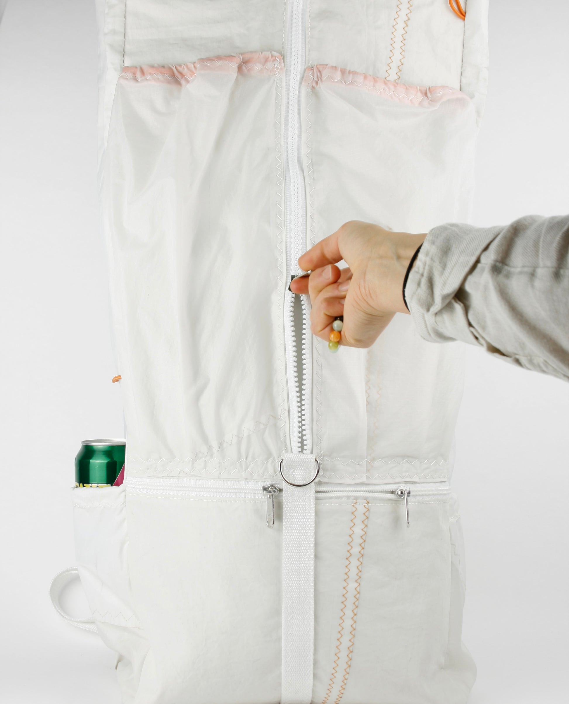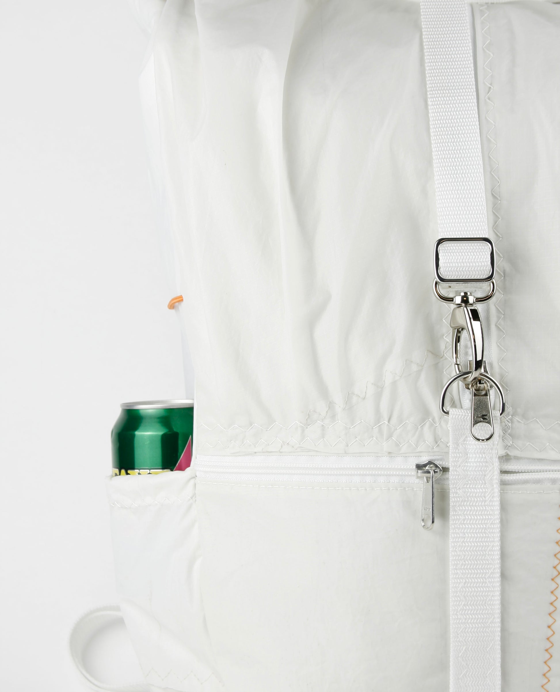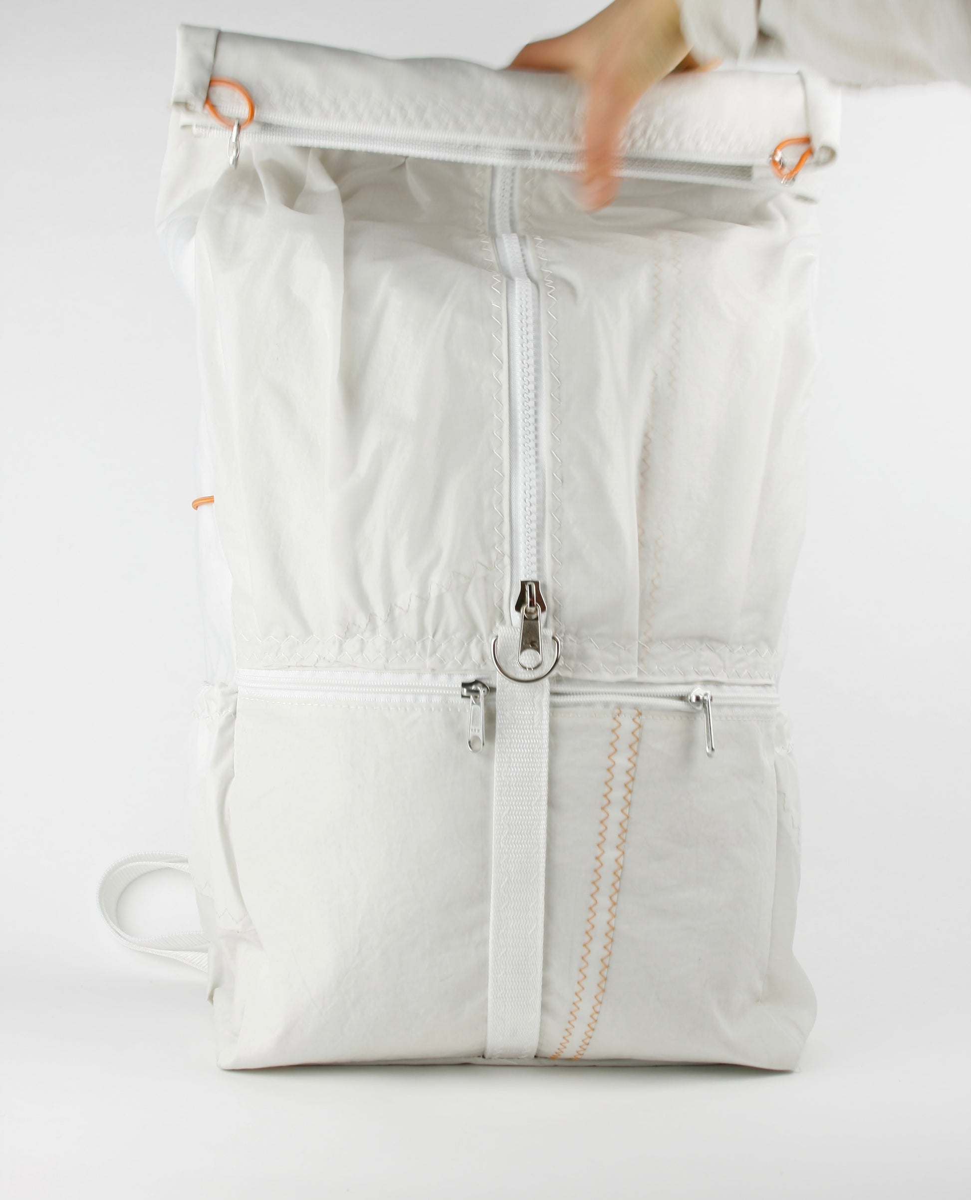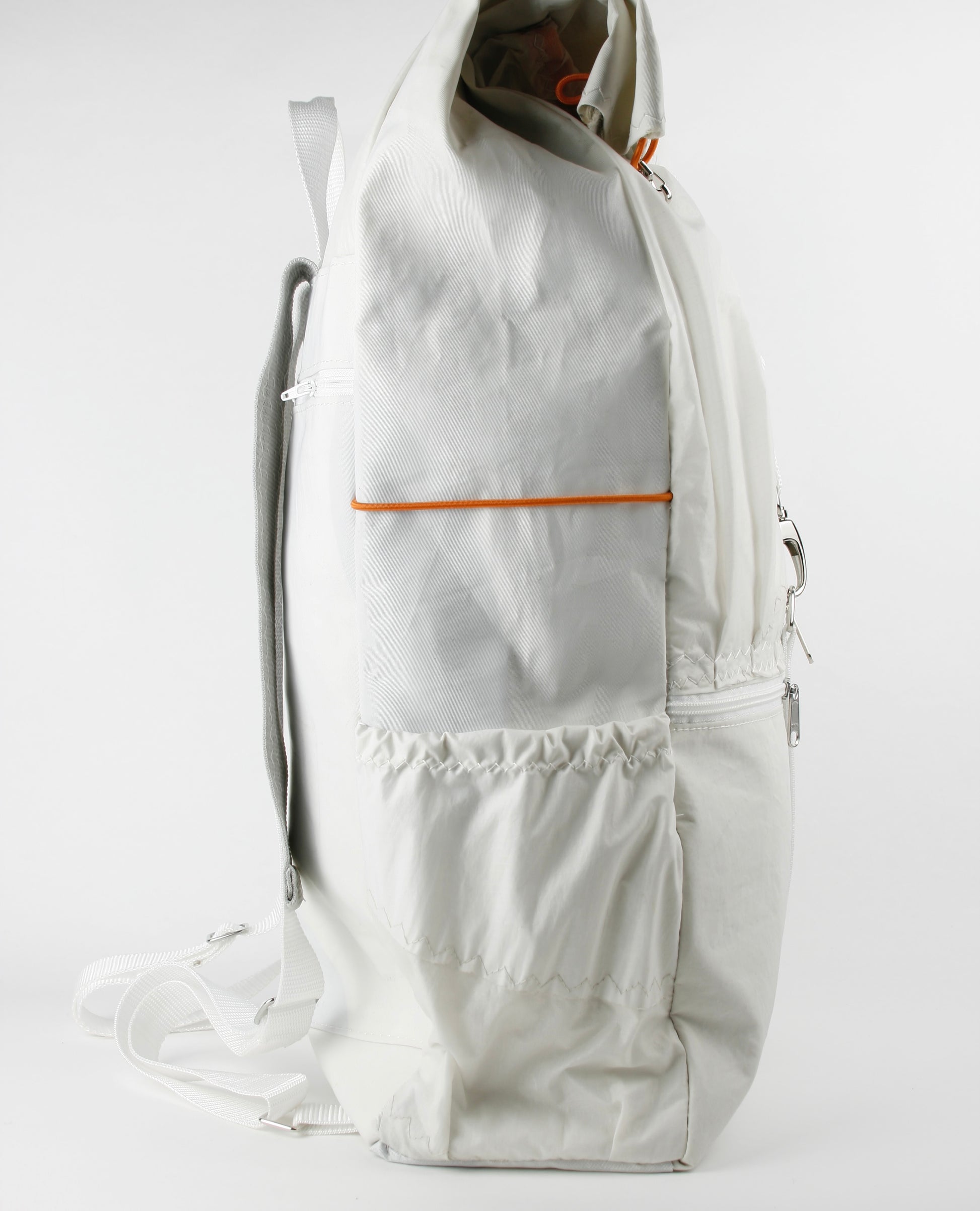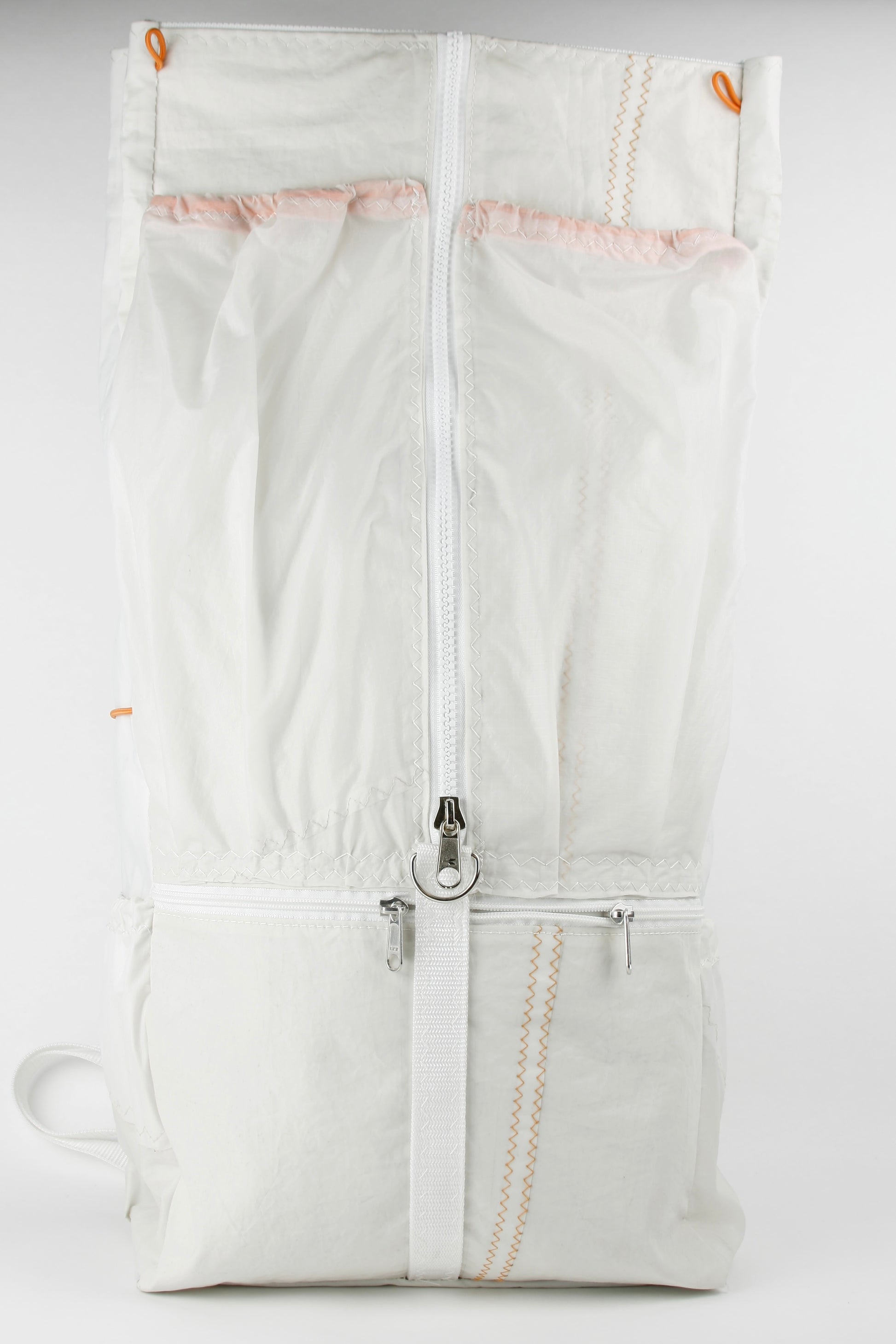 Material : 100 % recycled sailcloth material; polyester- / nylon fibers (fabric); polyester (straps); metall (hardware)